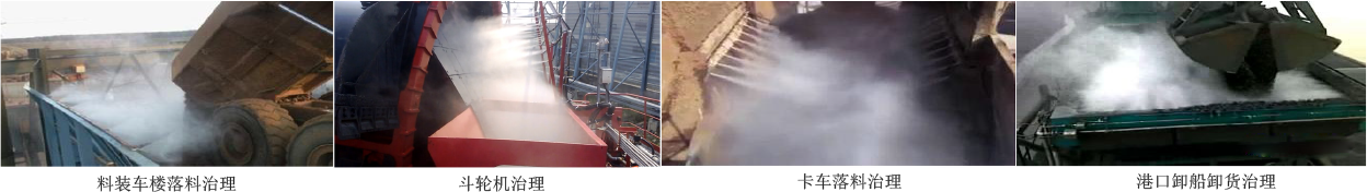 针对斗轮机部分,卡车装卸处,皮带下落处采用超细雾炮对于局部或者新增粉尘进行处理。